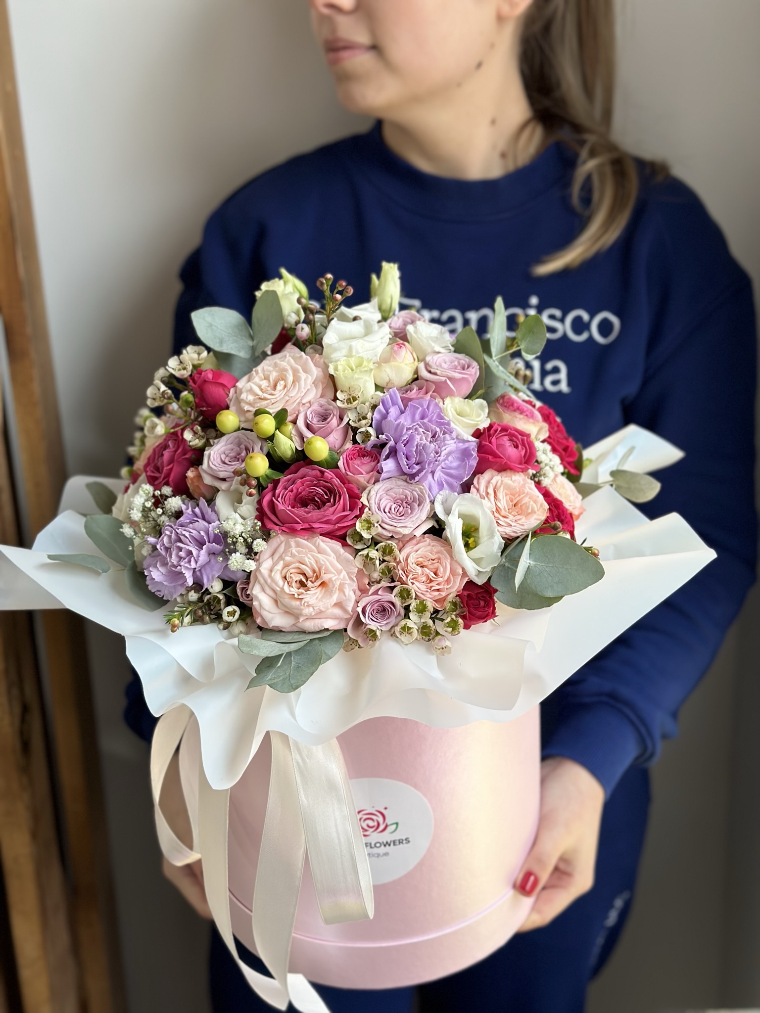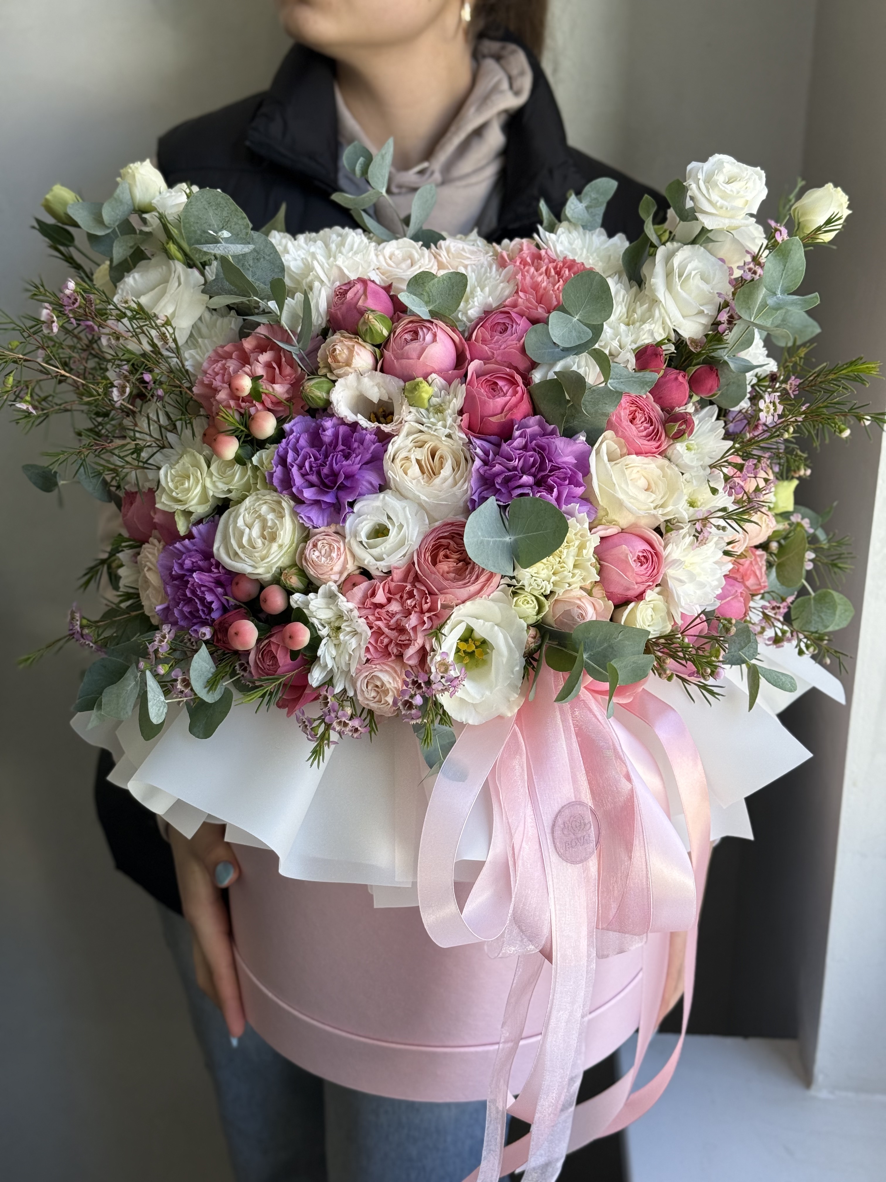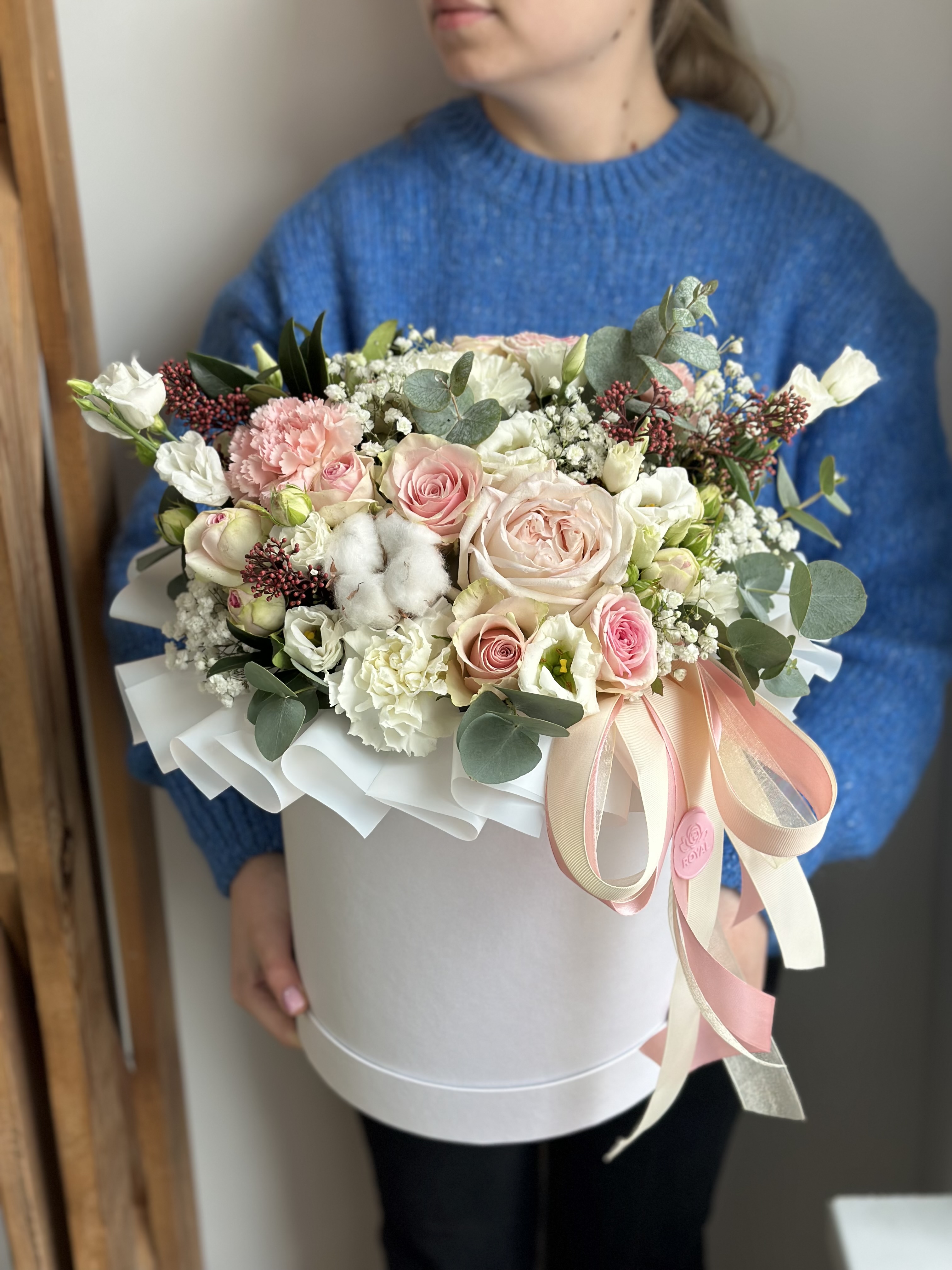 Цветы в шляпных коробочках
