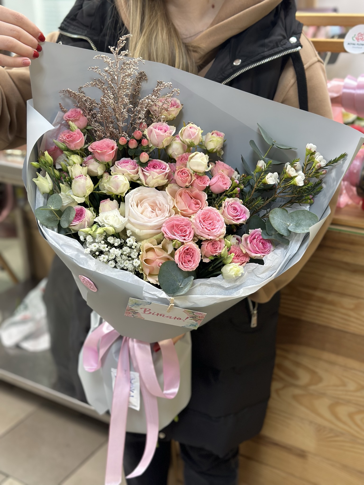 Ви завжди зможете купити чи забрати готовий букет за адресою вул. Панянка 75 квітковий салон ROYAL FLOWERS (з 9:00-19:00).